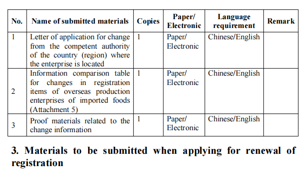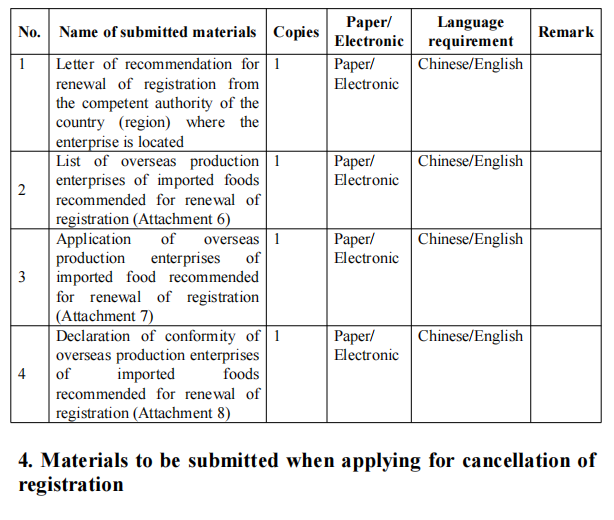 Unless otherwise agreed by the competent authority of the relevant country (region) and the General Administration of Customs on the application method and application materials, applications for the registration, change, renewal and cancellation of overseas production enterprises of imported foods shall be submitted through the registration management system of imported food overseas production enterprises.