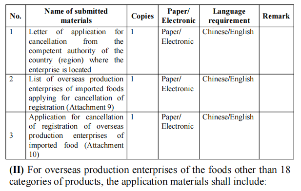Overseas production enterprises of the foods other than the above 18 categories of products shall apply to the General Administration of Customs and submit application materials by themselves or by entrusting their agents.